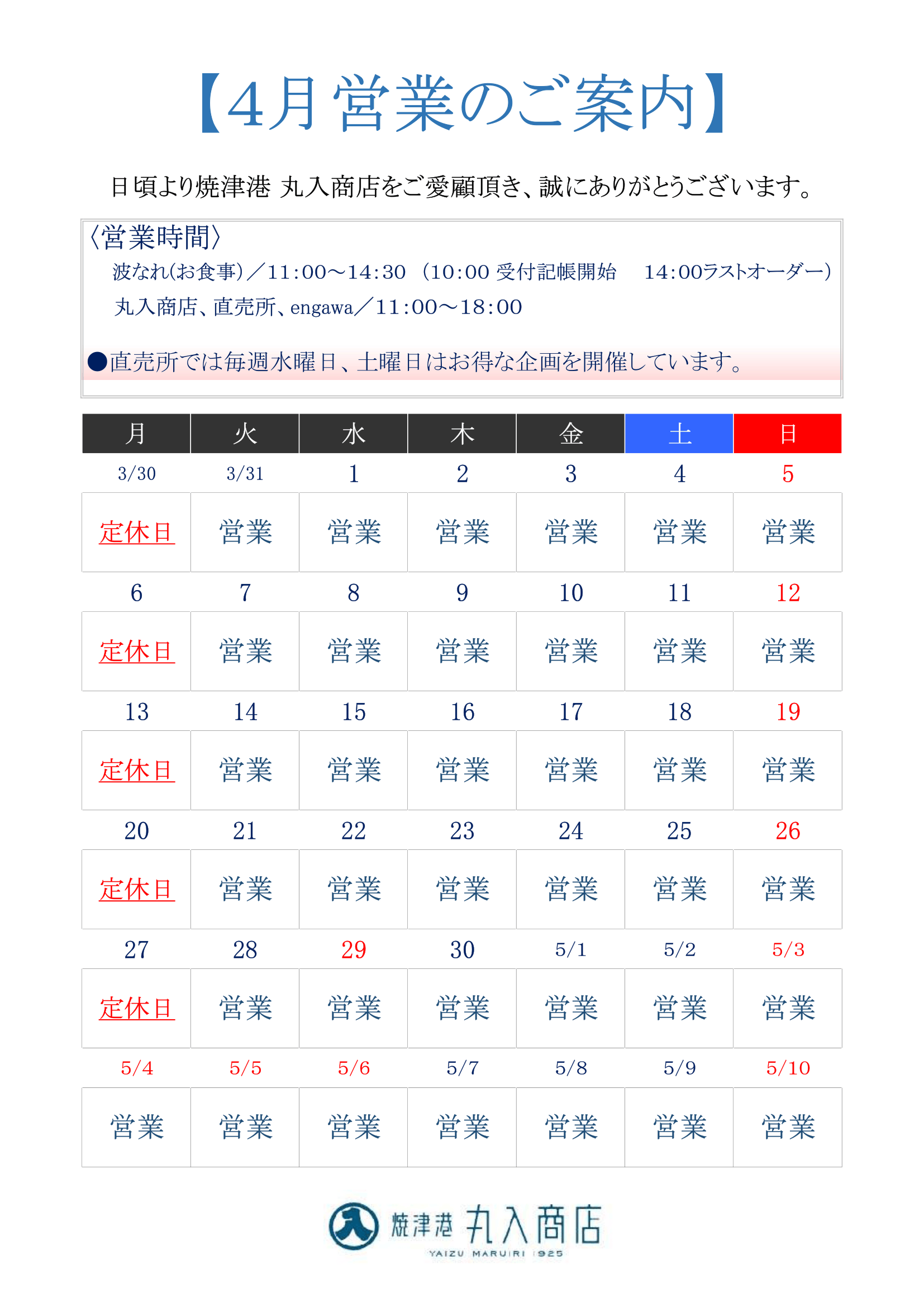 焼津港 丸入商店の物販店舗にくわえ、丸入商店の味をお試し頂けるお食事処、新しい魚の楽しみ方や糀ソフトクリームを提供するテイクアウトスタンド、直売所が併設され、本当に美味しい魚を様々な形で提供しております。