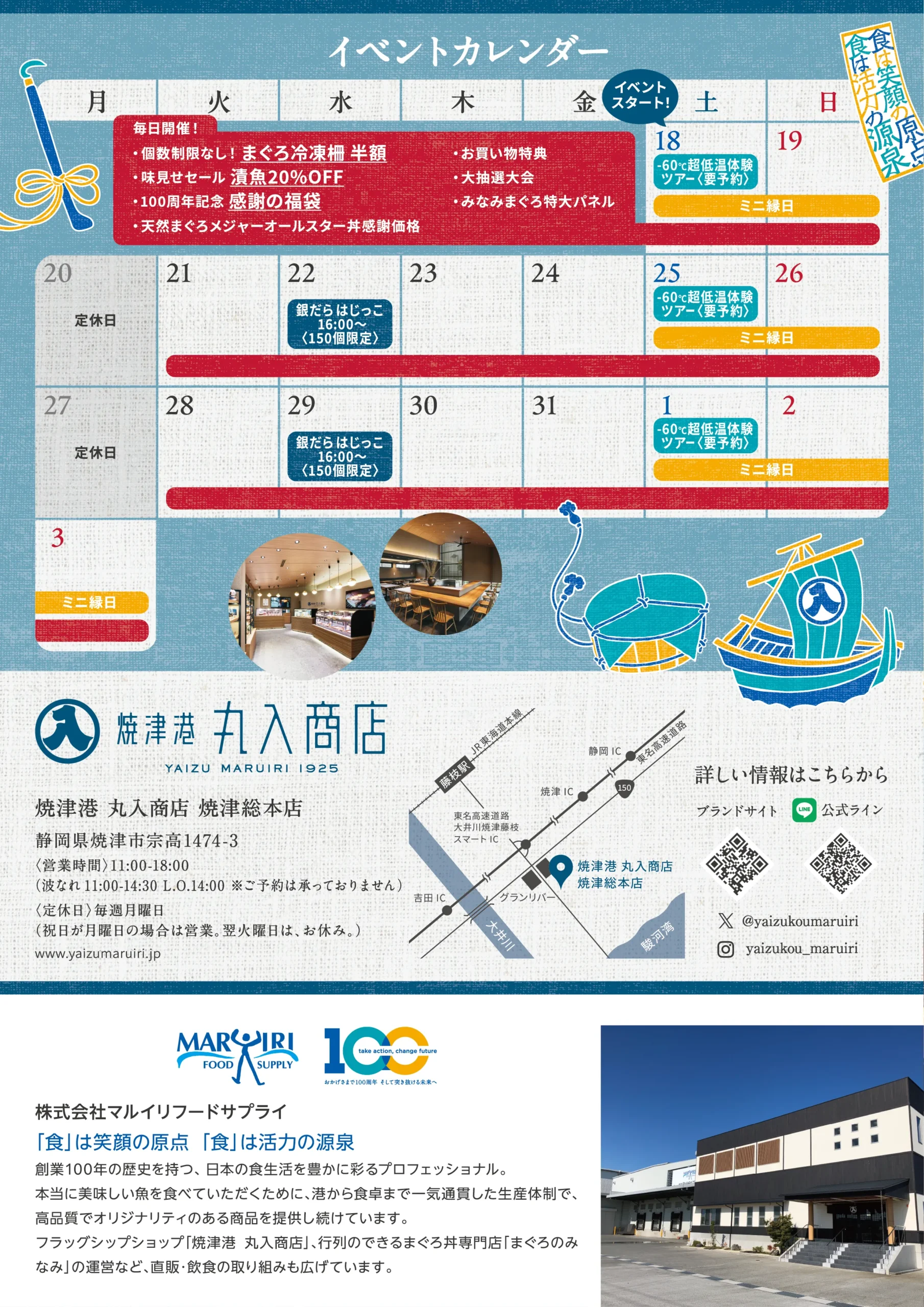 「#マルイリ100周年」をつけてInstagramかXで発信いただけた方には、「焼津港丸入商店あまくち醤油」を抽選でプレゼント!